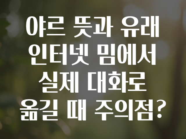 ❓ 야르 뜻과 유래, 그리고 인터넷 밈에서 실제 대화로 옮길 때 주의해야 할 점은?